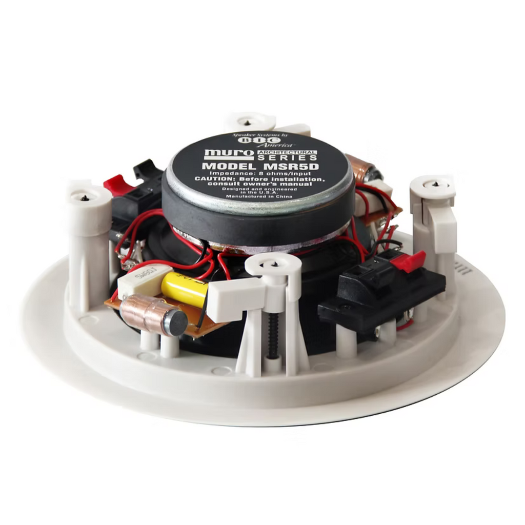 The BIC MSR5D is a compact 5.25-inch stereo in-ceiling speaker designed to deliver left and right channel audio from a single unit. It’s an ideal solution for smaller spaces such as kitchens, bathrooms, hallways, or offices where two separate speakers are not practical. With dual tweeters and a well-tuned woofer, the MSR5D offers clear highs, balanced mids, and smooth bass response in a discreet ceiling-mounted design.